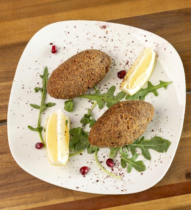 Fried cracked wheat, beef, lamb crust, stuffed with beef, onions, and pine nuts.